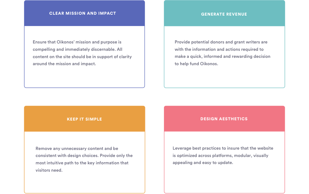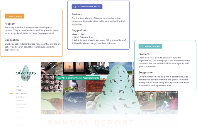 Oikonos is a non-profit based out of California and Chile with a mission to conserve coastal ecosystems and create good stewards of the environment. The Oikonos website is an important channel for communications, organizing campaigns, and facilitating donations. Oikonos’ management team recognized the need to improve the site’s ability to support these functions in order to maximize its value. They sought expertise in evaluating its current state and determining the best path forward.