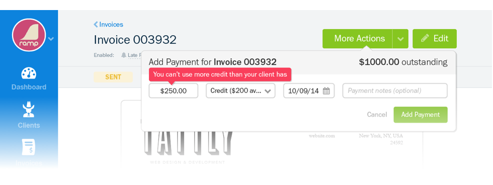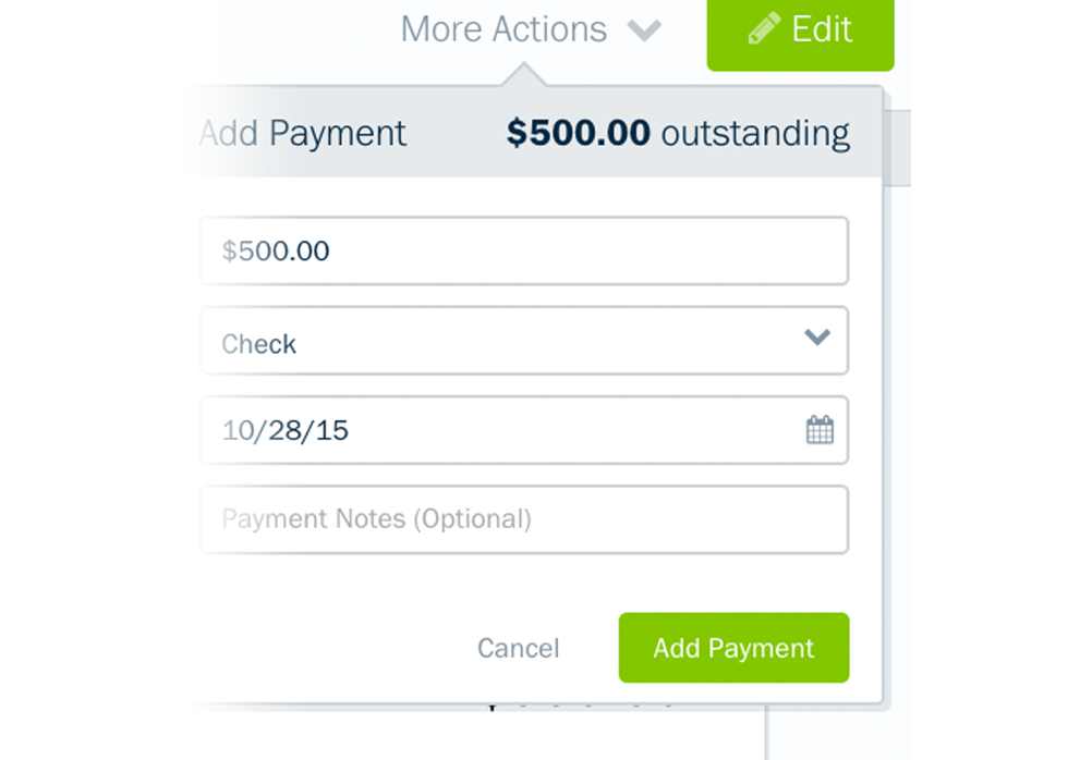 FreshBooks’ Admins often receive cheques from their clients as payment. Before building the infrastructure for credit card payment systems like Stripe, Paypal etc. the team sought to create a low dev effort, high gain solution that gives FreshBooks Admins the ability to manually add payments of any type.