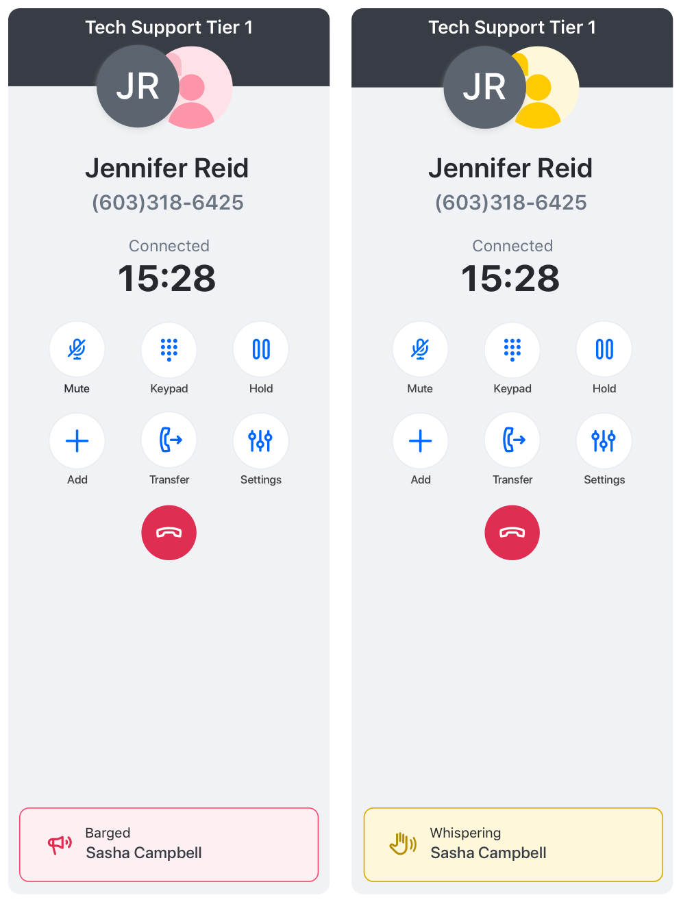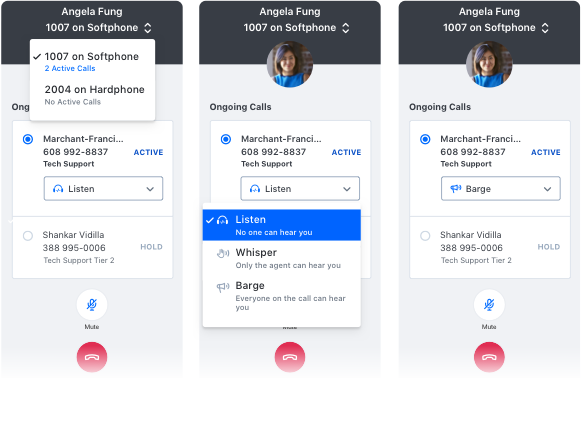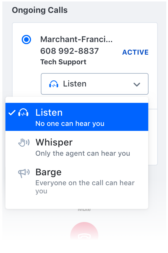 Staff inside of call centers are typically composed of one or more teams of agents who report to a supervisor. In order to assess the service level being delivered by agents, supervisors require access to monitor agent calls. While some call monitoring functions accessible through traditional hard-phone commands, our goal was to create a unified digital soft-phone experience that would retain existing functionality while improving upon and streamlining the existing workflow.